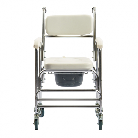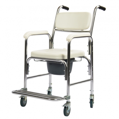 The 3 in 1 Commode on Wheels is a handy and durable product, having an aluminium construction with chrome coating for a waterproof and rustproof finish.