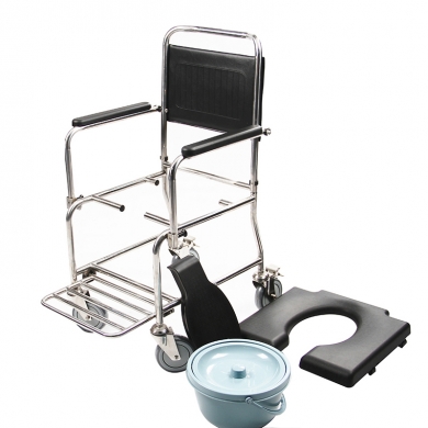 The CC81068A Commode Chair is made of a stainless steel lightweight frame and functions as a 3 in 1 commode where it is used as a commode chair, a shower chair and an indoor wheelchair.