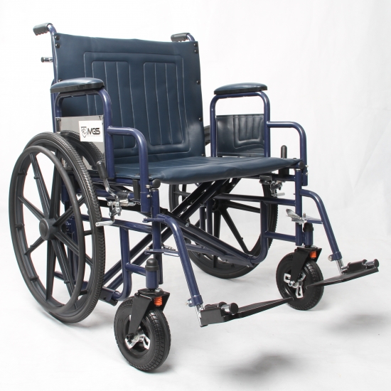 This heavy-duty, Extra Wide wheelchair is engineered for patients who weigh between 300 lbs. and 375 lbs. The specially reinforced frame and extra durable upholstery is constructed to withstand everyday use of larger individuals.