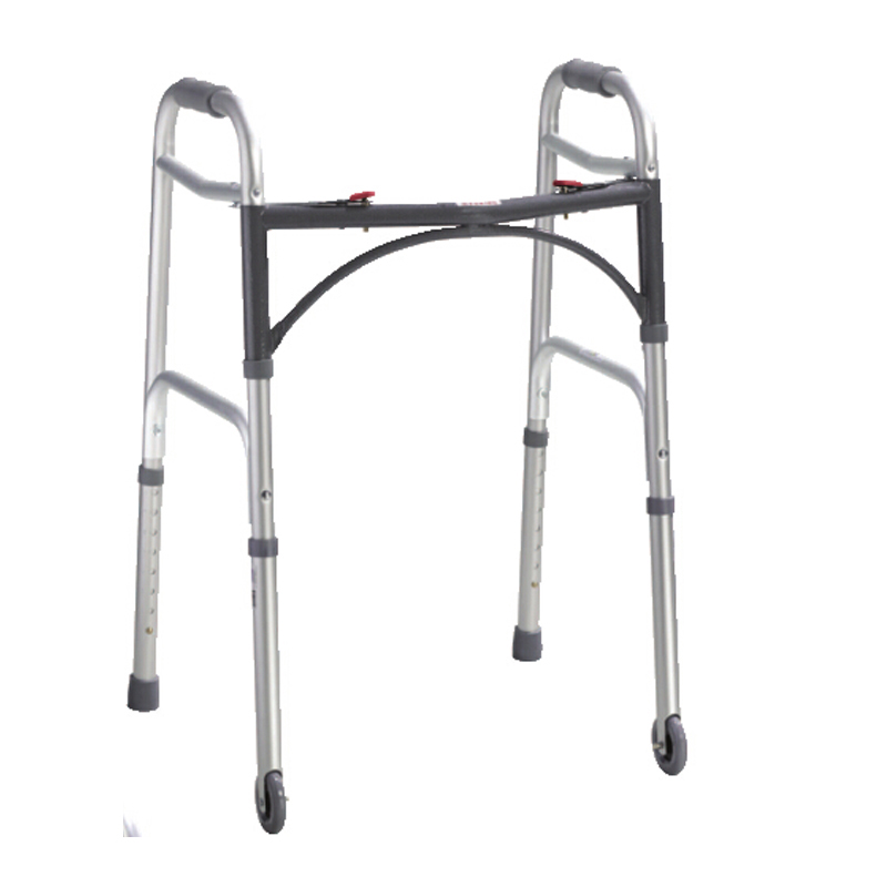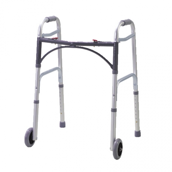One button folding mechanism offers quick, convenient operation and the folding mechanism make the walker mobility can be operated with one hand.