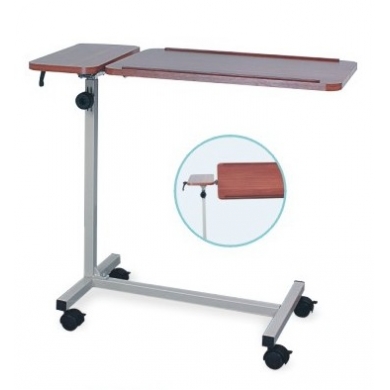The over bed table equips two table surfaces,a larger one that tilts in either direction and a smaller stays in place for secure.