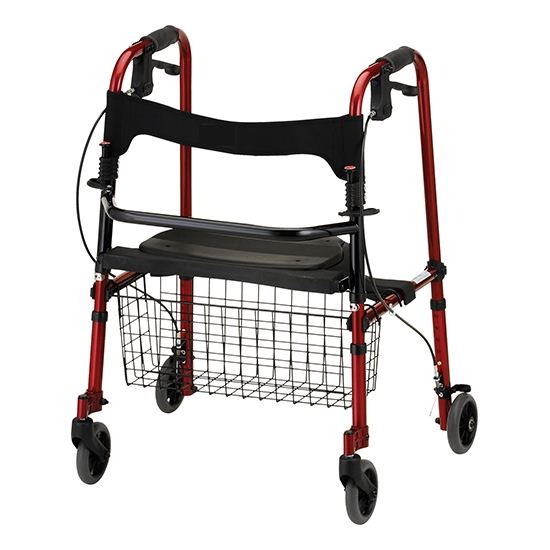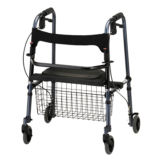 It is the only four wheeled rolling walker that folds and has adjustable legs like standard folding walkers. Additionally, it has the added benefits of locking hand brakes and a seat.