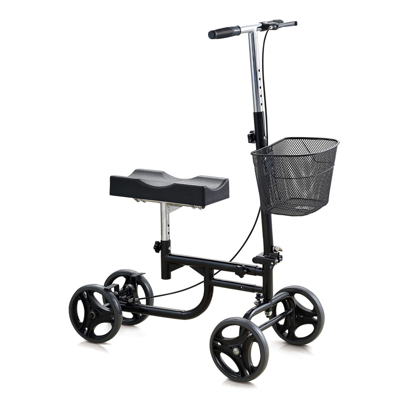 Deluxe hand operated brake for immediate stopping ability, and the foldable handle design help the knee wheelchair easily transport and storage.