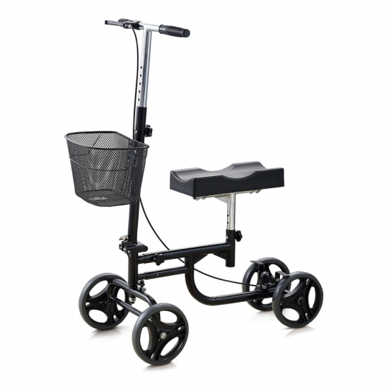 Unlike other models, the essential knee walker is made of aluminum frame and also be quickly folded, which means that it is very light for carrying . The 8 inch four wheels support it great for indoor and outdoor use, and also the dual braking system helps guarantee the safety.